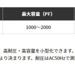 ポリフイルムの挿入により、高耐圧・高容量を小型化できます。